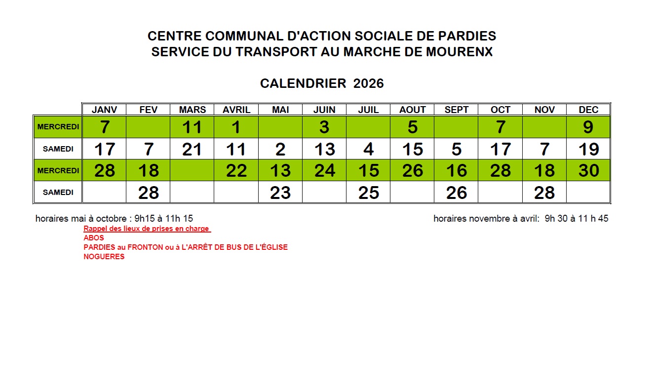 Depuis le 1er juillet 2014, un bus transporte gratuitement les Pardisiens au marché de Mourenx les mercredis et samedis matins.